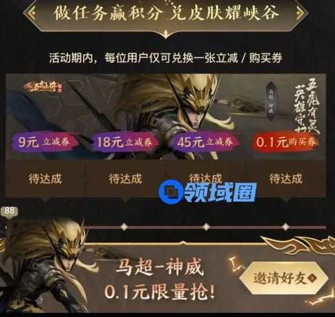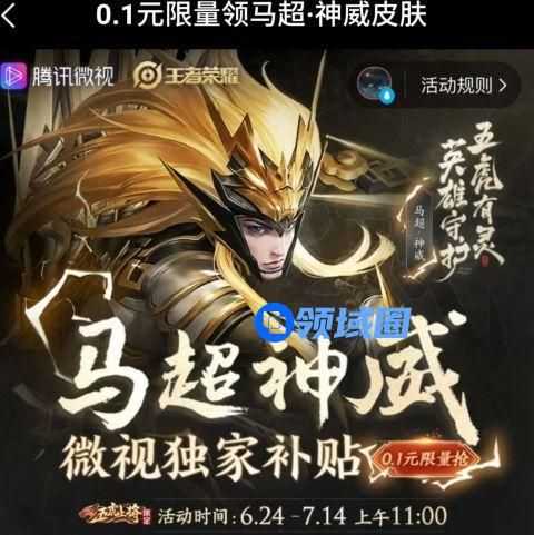 王者荣耀微视0.1元领马超神威皮肤怎么获得?这款皮肤现在开启了新活动,和微视一起为大家打造了超级福利,玩家只需要花费0.1元就能得到这款皮肤,皮肤的购买地址下面会有入口分享,想要参与活动的玩家赶紧来抢购吧。