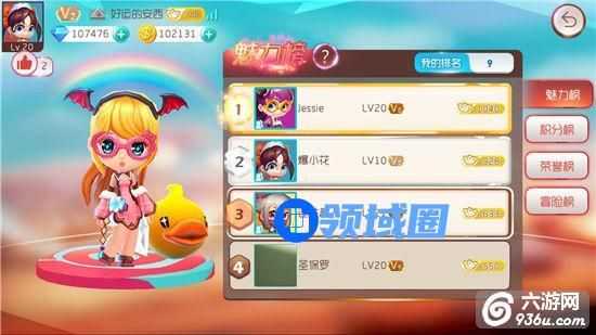 1、魅力榜:个人魅力值排行榜,玩家在购买或获赠新的时装炸弹时都会增长魅力值。