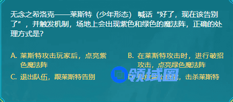 无念之希洛克——莱斯特(少年形态) 喊话“好了,现在该告别了”,并触发机制,场地上会出现紫色和绿色的魔法阵,正确的处理方式是?游戏宝小编为您带来正确答案。