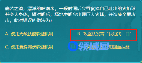 痛苦之镜,漂浮的咕噜米,一段时间后会吞食掉自己吐出的火焰球并变大身体,短时间后,场地中间会出现巨大火球,并造成全屏攻击,此时错误的做法为?下面游戏宝小编为您带来正确答案。