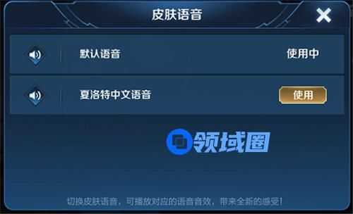 首先在夏洛特熟练度等级达到【3级蓝色】之后,中文语音就会自动激活,前往夏洛特的英雄界面,点击【语音】按钮,便能进入下图所示的【皮肤语音】界面。点击中文语音右边的【使用】,就能在局内听到中文语音了。