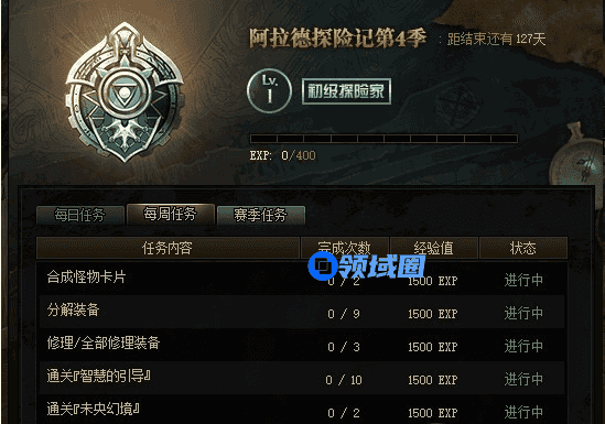 每周任务全勤可得114000点经验。128天/7=18.2周(由于9月22日为周2,周任务将会在每周四更新,从而我们可以计算为19周的任务),那么每周经验为6000(每周总经验)X19=114000点