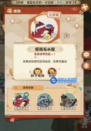 玩家必须先经由挑战妖怪请柬副本来获取石小距宠物之后,石小距会出现在庭院右边的河里,这时才能够为它换上经由签到活动获得的新皮肤哦。