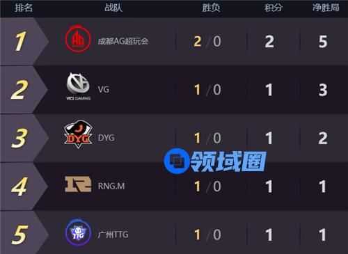 总而言之,AG超玩会以两连胜的战绩领先,可以看出依旧是夺冠热门。其他战队的比分也是紧追其后,比较值得关注的是TS战队,被微博收购后改名WB,不知能否继续创造奇迹。