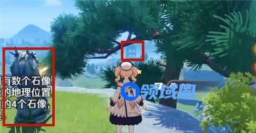 第一个石像:如下图所示,前面有个庙宇的建筑,点亮左边的那个石像。