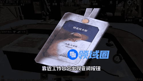 大家在靠近工作台中会出现查阅按钮,然后点击查阅按钮会出现一张身份卡。