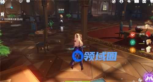 用水元素或者风元素的角色,释放技能,就能清理脚下的污渍。风主的E,最佳之选。