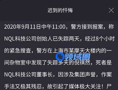 犯罪大师迟到的忏悔凶手是谁?今天犯罪大师有更新了一个新的案件:迟到的忏悔,很多玩家都猜不出来迟到的忏悔凶手是谁,今天小编就为大家分享下犯罪大师迟到的忏悔攻略解析,希望能够帮助到玩家!
