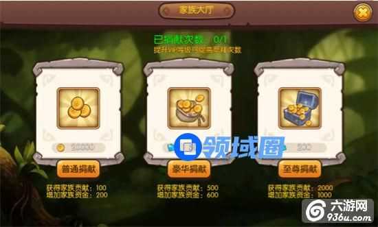 在家族大厅中,玩家们可以根据自己的意愿进行捐献石币或钻石。VIP等级越高,捐献次数越多。每天最多可以捐献三次。捐献次数越多,对家族贡献越大。同时捐献次数也影响家族等级与家族商店、篝火宴席的升级。