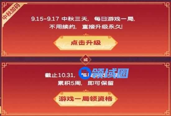 2、中秋三天每天游戏一局即可免费升级永久。每周游戏一局,累计五周也可永久保留。