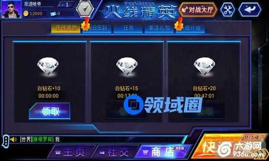 只要玩家在线就可以领取钻石,在线时间越长则可以领取的钻石数量越多,在线奖励每天只可以领取一次哦!