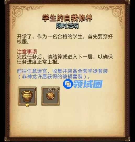 前往任意迷宫收集并穿好全套校服(学徒套装)