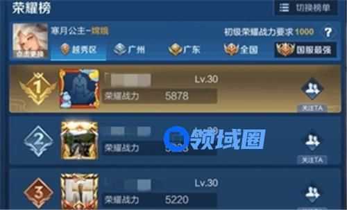 2、排名要求:英雄荣耀战力在全国地区中,排名前100名。(PS:包括第100名)