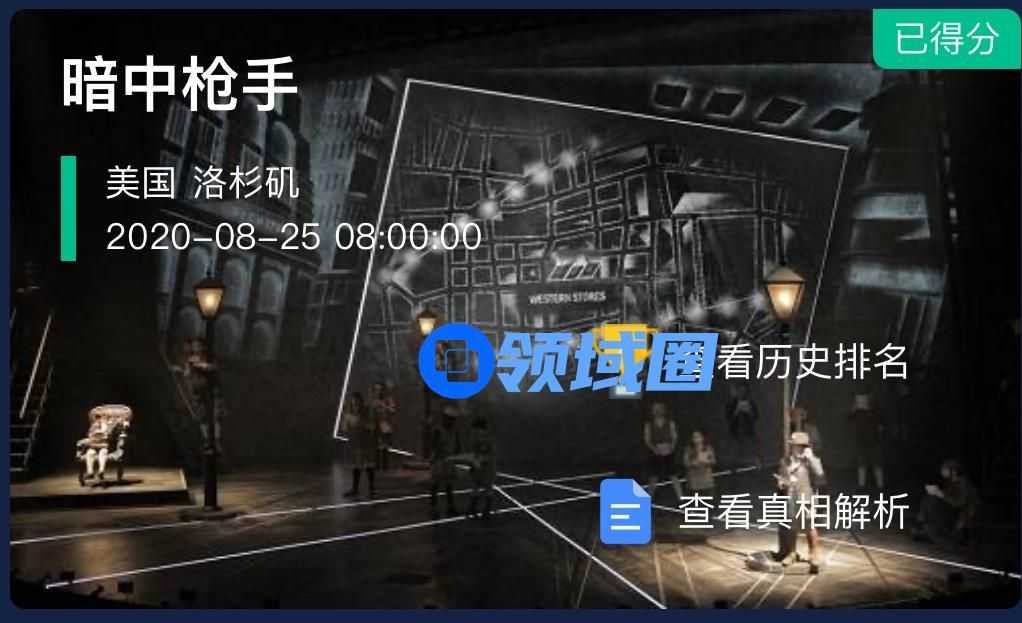 8月25日晚8点犯罪大师也是终于公布了最新一期突发案件暗中枪手的最终答案。这都是经过了我们所有侦探玩家们的一天努力换来的结果,那么这次的突发案件你做对了吗?下面就跟小编一起来看看犯罪大师暗中枪手的答案吧!