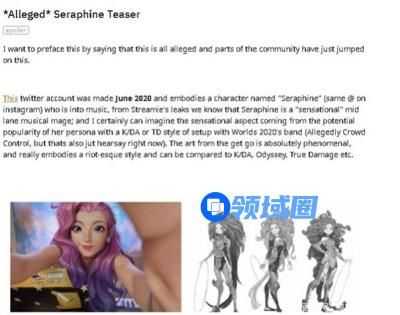 目前,刺客射手定位的萨米拉还没有完全公布,按理说新法师应该会排在她后边,但还没等游戏上线,她就已经在社交媒体上大火了:下下一个新英雄的名字叫做Seraphine(暂译为塞拉芬),这条消息出自一位巴西著名爆料主播Streamie(曾爆料过灵魂莲华、莉莉娅和永恩),并指出她是一位喜欢音乐的法师。