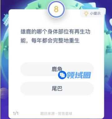 蚂蚁庄园8月21日题目雄鹿的哪个身体部位有再生功能,每年都会完整地重生?这个问题也是相当的有水准了,小编认为应该会难倒一波小伙伴们,为了这180g的鸡饲料小编也是帮大家找到了答案。感兴趣的快来看看吧!
