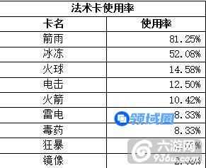 可以看出,箭雨的使用率达到80%以上,完全压倒其他卡牌!箭雨低费解人海、女王,还有直接明赚苍蝇海2费,这些都是最直接的理由,相反,如果手牌中没有一张箭雨,意味着需要花更多心思去平衡卡组。
