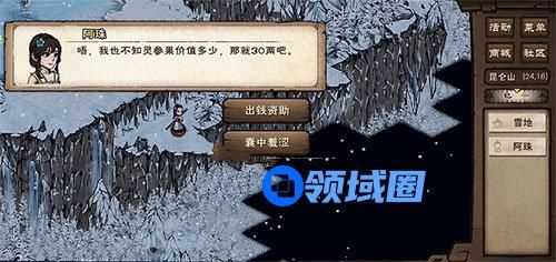 然后她会说没有盘缠了,需要让你资助,给他30两,然后就可以顺利的购买这个灵参果了,不得不说这个价格还是非常高的,这个女侠明明就是趁火打劫,银两太难挣呀,然后给她之后她就会蹦蹦跳跳的揣着银子离开,之后玩家就可以顺利得到这个道具。可以去继续完成任务了。