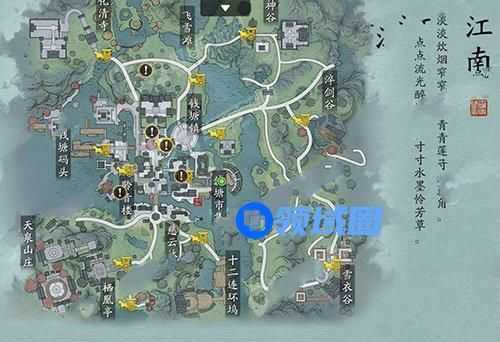 这个就是在江南钱塘市集下面的一个小码头旁边,玩家可以仔细参考这个图中所示的位置,就是红色方框标注的区域。