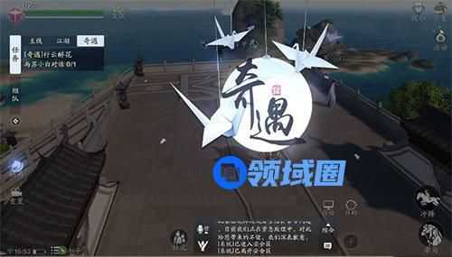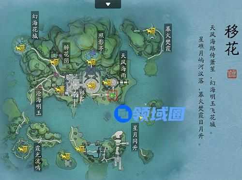 之后玩家来到移花如图所示的位置,之后在这里就可以自动的触发这个奇遇,玩家可以和苏小白进行对话,之后寒暄几句,然后顺利完成。