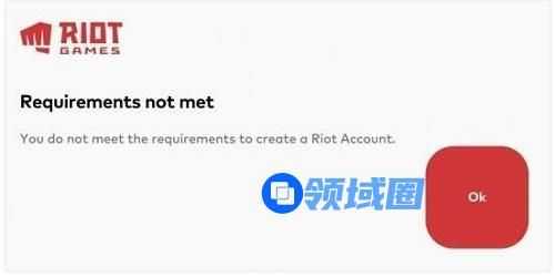 5、登录游戏内显示“Requirements not met You do not meet the requirements to create a Riot Account.”需要你绑定一下你的拳头账号,其中还要填写生日,如果没写年龄的话就会出现这个。