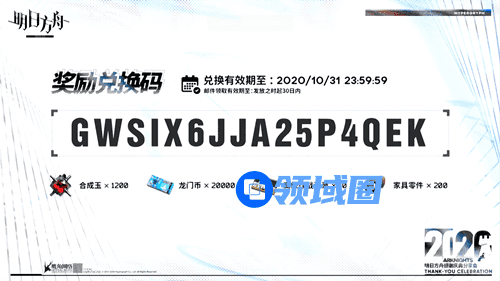 2020明日方舟感谢庆典兑换码可以兑换出合成玉、龙门币、高级作战记录、家具零件奖励,因此很多玩家想知道2020明日方舟感谢庆典兑换码是多少?游戏宝小编为您带来明日方舟感谢庆典兑换码。