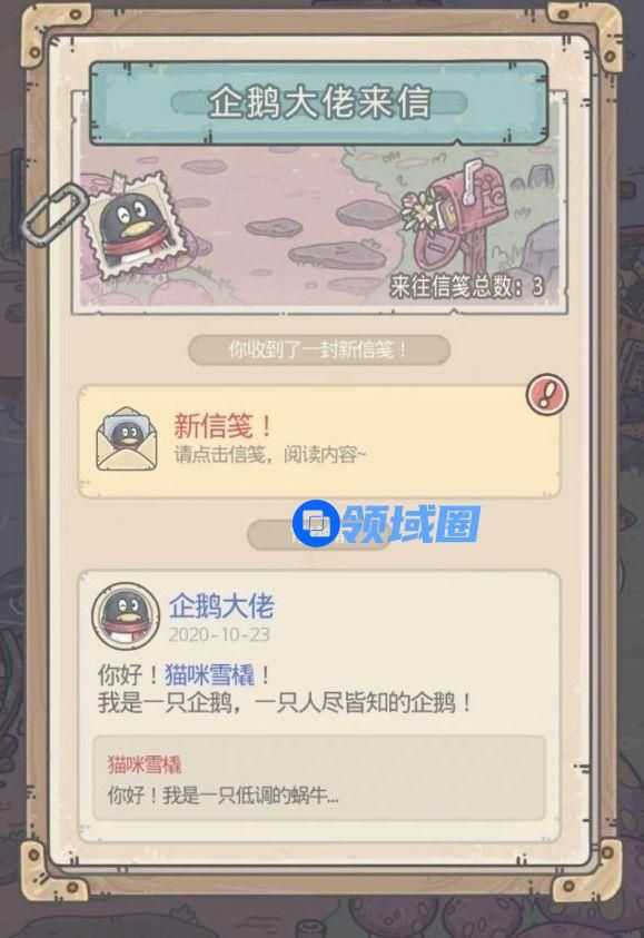 2.在家园邮箱中会出现新的访客企鹅大佬。