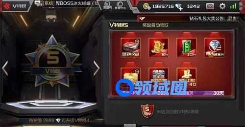 累计充值58888钻,黄金m249120天,妖姬90天,金币增加10%,经验值增加20%,暴击增加30%,王者礼包折扣更多。
