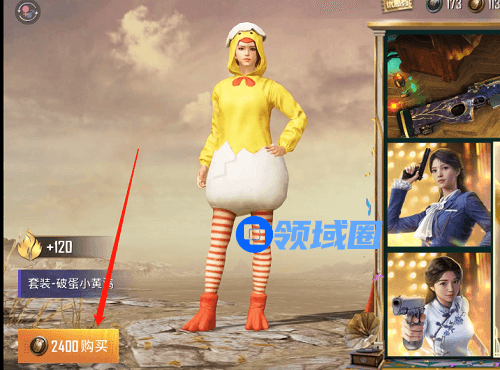 点击购买即可,这套破蛋小黄鸡需要2400服饰币哦。