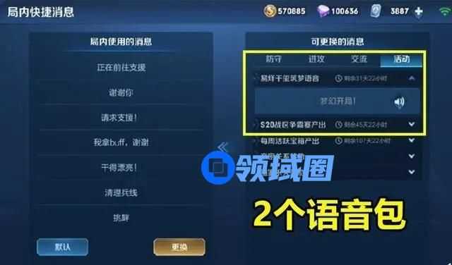 局内快捷消息,可更换的消息,选择活动区域。