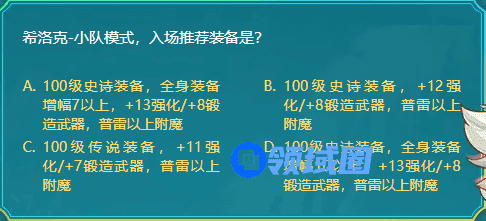 希洛克-小队模式,入场推荐装备是?这是10月16日DNF阿拉德智慧星题目之一,回答正确后会有智慧星奖励,那么正确答案是什么呢?下面和游戏宝小编一起去了解一下吧。