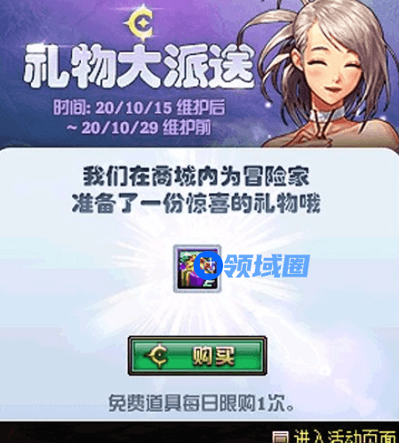 活动期间,勇士们每天都可以在商城中免费购买1份特别礼物,可以从疲劳值上方的活动图标直接进入商城内的购买界面。