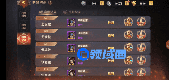 玩家在各种副本中可以使用联盟其他成员派遣的助战,每日只能助战一次且只能上阵一名助战,注意助战主将与雇佣玩家的等级差大于3级,将会被调整至对应等级。助人为乐还是会得到奖励的嘛,派遣主将获得银币奖励,主将等级越高奖励越多哦!这个板块的要领就是助人为乐,多多益善!