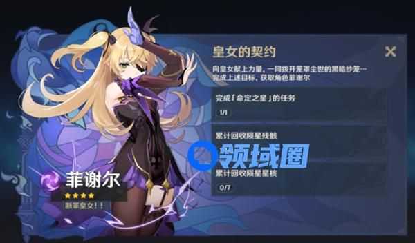 未归的熄星除了有活动兑换道具之外,还能够通过完成任务的方式,获得4星雷属性角色“菲谢尔”。