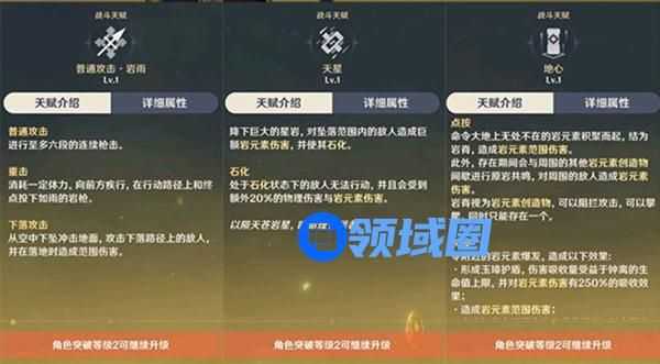 元素爆发·天星:降下巨大的星岩,坠落后对地方造成伤害,并使其石化,石化状态下敌人无法移动,并额外造成20%物理与岩元素伤害;