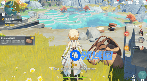 总而言之,梵米尔的画笔与颜料分别在[渌华池]的东西两岸,中东岸是画笔,西岸是颜料。由于这是内测未出现过的新任务,所以才会有很多旅行者找不到这两个任务道具的位置。