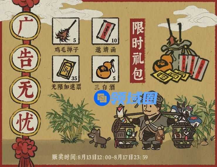 礼包内容【鸡毛掸子*5,邀请函*10,无限加速票*35,三白酒*5】