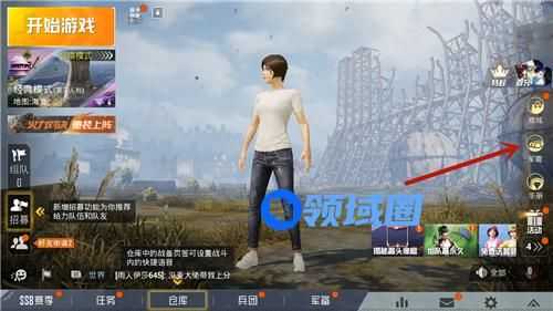 首先玩家在游戏大厅中的右边点击军需按钮。