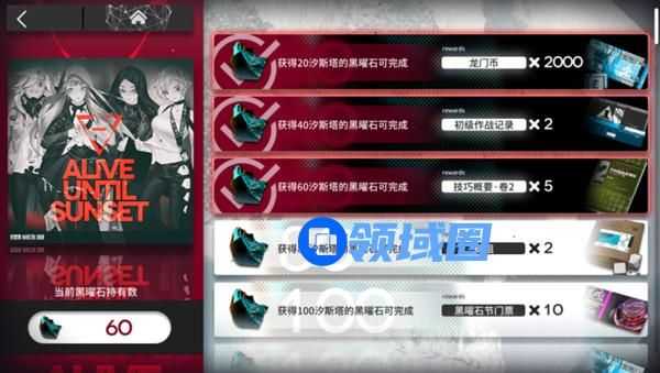 主舞台:关卡OF-1至OF-8,需要消耗理智进入,会掉落「汐斯塔的黑曜石」或「黑曜石节门票」。其中,黑曜石累积到一定的数量,会获得里程碑奖励。
