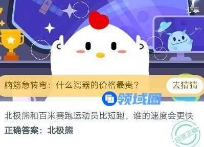 蚂蚁庄园8月12日问题是北极熊和百米赛跑运动员比短跑谁的速度会更快呢?相信很多朋友会对该问题产生一定的疑问,大部分人觉得北极熊这么笨重,怎么可能跑的起来呢?下面,游戏宝小编就给大家带来该问题的答案。