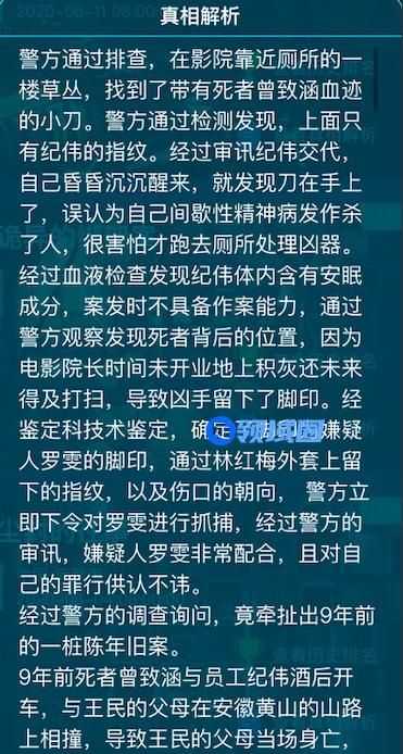 这次的案件小编已近看过官方给出的案件解析了,来龙去脉我在这里就不再重复了,请各位侦探玩家们自行结案后查看。