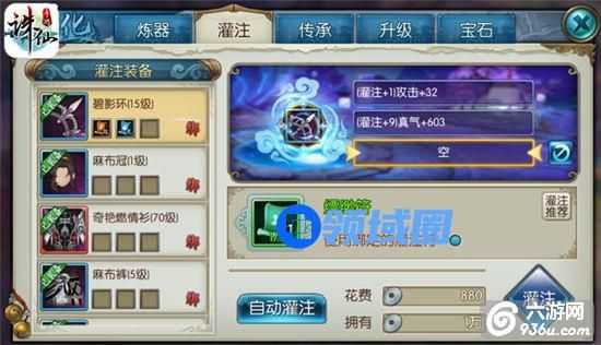 (2)灌注成功一次根据使用的灌注符的品质不同可以提升不同的灌注等级,使用的灌注符品质越高,可以提升的灌注等级就越高。