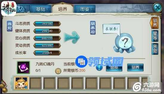 (4)玩家可以通过【驯养】操作,对二者进行更改,数值越接近上限,宠物越具备培养价值。