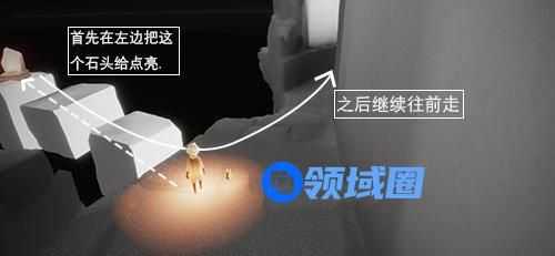 在这里可以看到对面有个石头,需要你先点亮,注意石块不稳定,需要小心谨慎。
