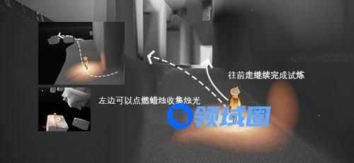 在对面如图所示的布局,先把前面的这个大蜡烛给拿了,然后在往右边走,可以继续主线试炼。