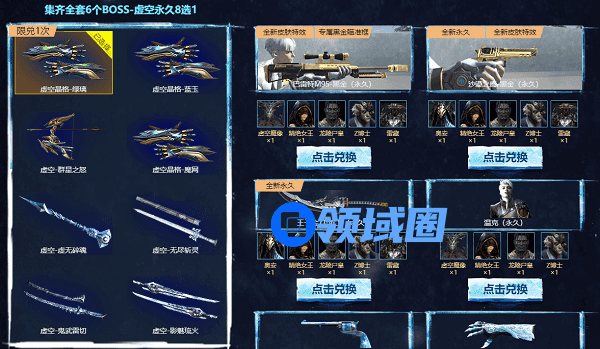 玩家们可以根据自己喜欢的选择一个的,这个需要玩家们去兑换的。但是玩家们必须要集齐6个boss才可以兑换虚空永久8选1的,还没有收集完boss的玩家们需要去做任务的哦。游戏宝手游网小编建议玩家们选择虚空晶格魔网。
