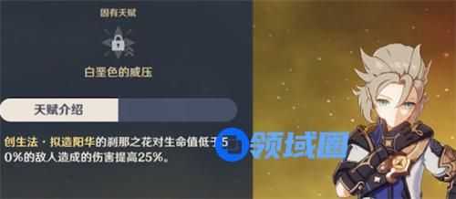 再来看阿贝多的固有天赋,同样是具有增伤效果,还是提高25%的高额伤害。