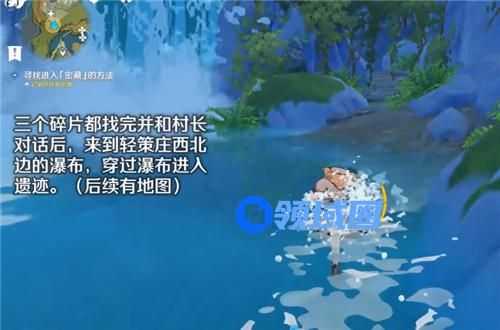 首先从瀑布右边的路进去,走到一个铁门那里交互,用收集到的三个碎片,就能开启轻策之藏的大门。