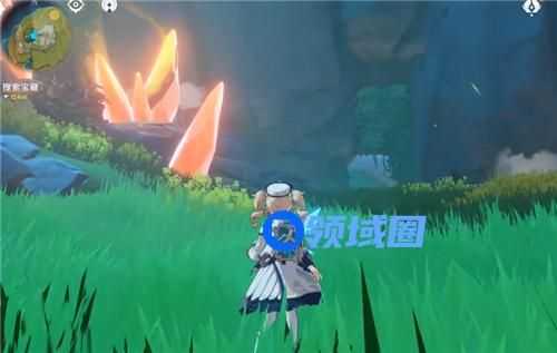 然后将几个遗迹守卫击败之后,派蒙会提示我们四处找找,宝藏就位于前方的洞口中,小地图上还有黄色圈圈。