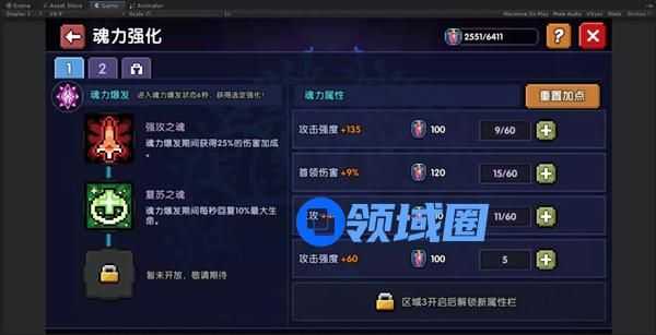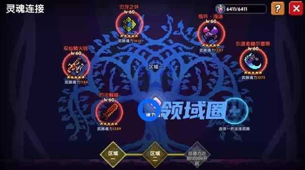 总魂力达到一定值后,可以开启新的连接区域,可连接更多武器。开启新的区域后,可解锁新的魂力属性栏,并获得一个魂力加点方案重置道具——灵魂之种。